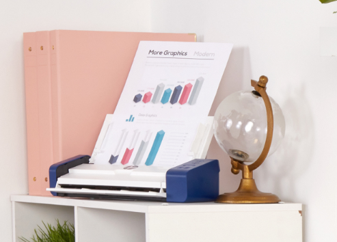 The scanner’s universal feeder receives documents of various dimensions from full size pages to small cards and receipts.